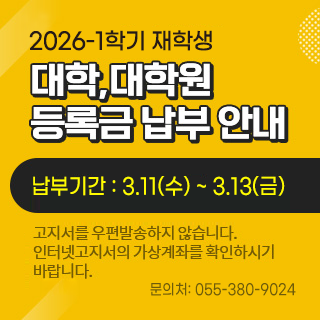 대학생활 지혜로운 가치를 배우는 대학, 지혜로운 당신을 만드는 대학 메인으로 이동 대학생활 학교소개 입학 대학/대학원 대학생활 커뮤니티 공익신고/청탁금지 및 행동강령 위반신고 학사 학사 장학·학자금 국제교류 취업·진로개발(YCMP) 학습지원 학생활동.병무.편의 시설사용안내·신청 학부모 참여 학사일정 수업 학사일정 등록금안내 학적 졸업인증제 와이즈 핵심역량 인증제 학사 서식·자료실 증명서 발급 SNS 공유하기 페이스북 트위터 블로그 인쇄 홈으로 대학생활 대학생활 학사 수업 학사일정 등록금안내 학적 졸업인증제 와이즈 핵심역량 인증제 학사 서식·자료실 증명서 발급 장학·학자금 장학 정부장학·학자금 국제교류 프로그램 안내 후기 취업·진로개발(YCMP) 학습지원 영어교육 자기주도학습·비전·리더십 독서·글쓰기 클리닉 도서관 공직시험 지원 로스쿨 진학 지원 학생활동.병무.편의 학생회.동아리.언론사 병무.예비군 편의.복지.기숙사 교내식당 주간메뉴 온라인 서비스 시설사용안내·신청 풋살경기장 잔디운동장 창의설계실 신청하기 예약현황 학부모 참여 학부모 참여 소개 학교생활 안내 내 자녀 정보 학부모와 함께하는 교육 학부모 참여 프로그램 학사일정 2025년 2026 2027년 전체 01월 선택됨 02월 03월 04월 05월 06월 07월 08월 09월 10월 11월 12월 2026년 1월 학사일정 달력으로 일별 일정 제공 일 월 화 수 목 금 토 SUN MON TUE WEN THU FRI SAT 1 2 3 4 5 6 7 8 9 10 11 12 13 2학기 성적표 발송 14 15 16 17 18 19 동계 계절학기 성적입력기간 20 21 동계 계절학기 성적열람 및 정정기간 22 23 24 25 26 1학기 수강신청 희망과목담기 27 28 1학기 수강신청 기간 29 30 31 * 상기 일정은 사정에 따라 변경 될 수 있습니다.
